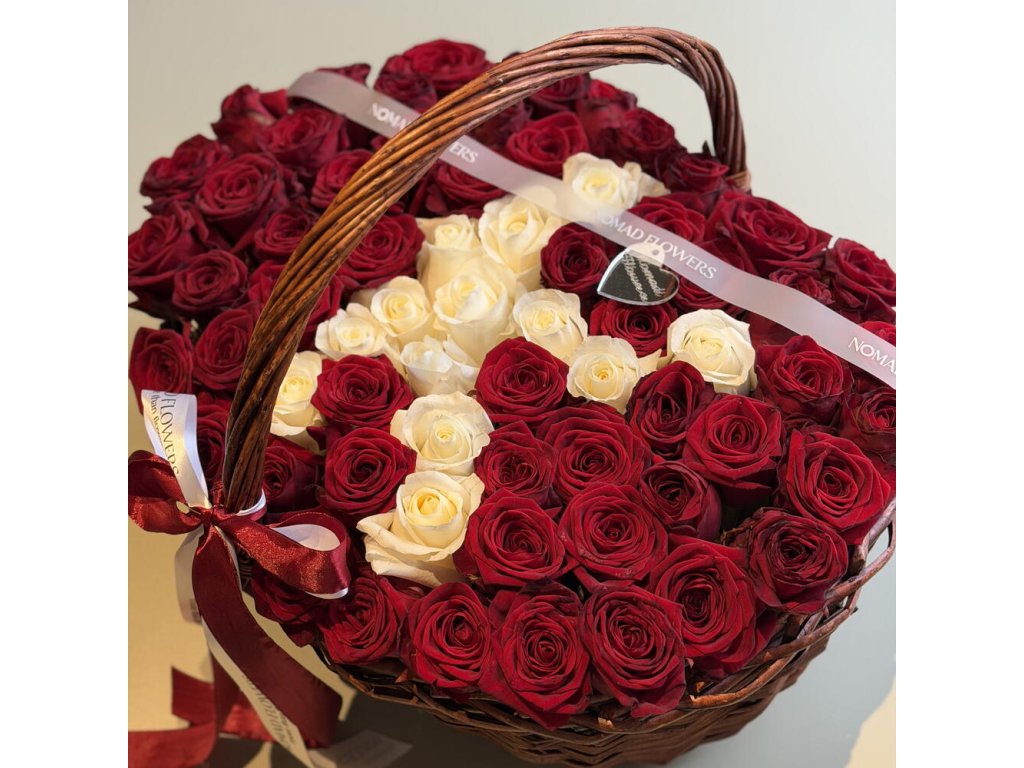 A beautiful arrangement of red and white roses with the first letter of her name ♥️ The initial will be made from white roses (in the Latin alphabet), and the rest of the arrangement will be composed of red roses. The arrangement includes approximately 65 roses. P.S. Please write the first letter of the name in the notes when placing your order ✨