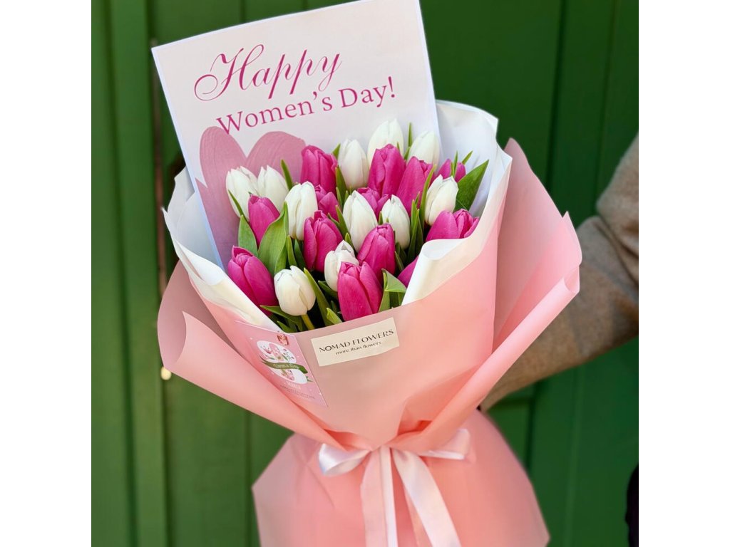 The perfect choice for March 8 — fresh spring flowers! Only fresh and fragrant flowers. A custom card as a gift to each bouquet.