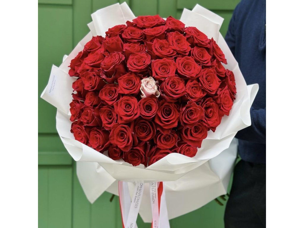 Don’t feel like experimenting with flowers? ❤️🔥 Then red roses are exactly what she’ll love! We can prepare 51 red roses, or add one white rose like in the photo. Only Fresh and Fragrant Flowers.