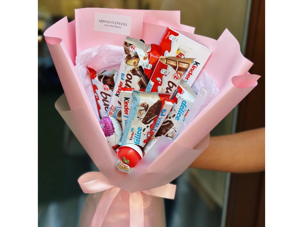 Handmade Bouquet with Kinder Chocolate for Her 🩷 Perfect Sweet Present from NOMAD Flowers.